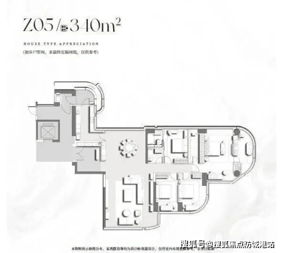 400㎡户型为六室两厅五卫设想。